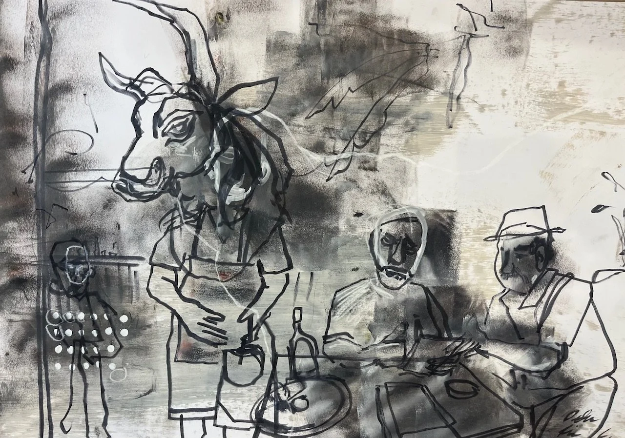 ohne titel 2025Acryl, Marker und Ölpastell auf Papier / 84 x 59 cm Im Vollbildmodus anzeigen Im Vollbildmodus anzeigen Im Vollbildmodus anzeigen Im Vollbildmodus anzeigen