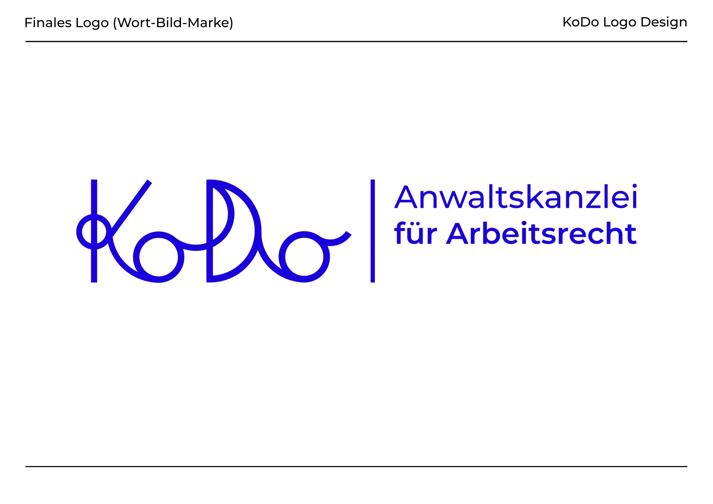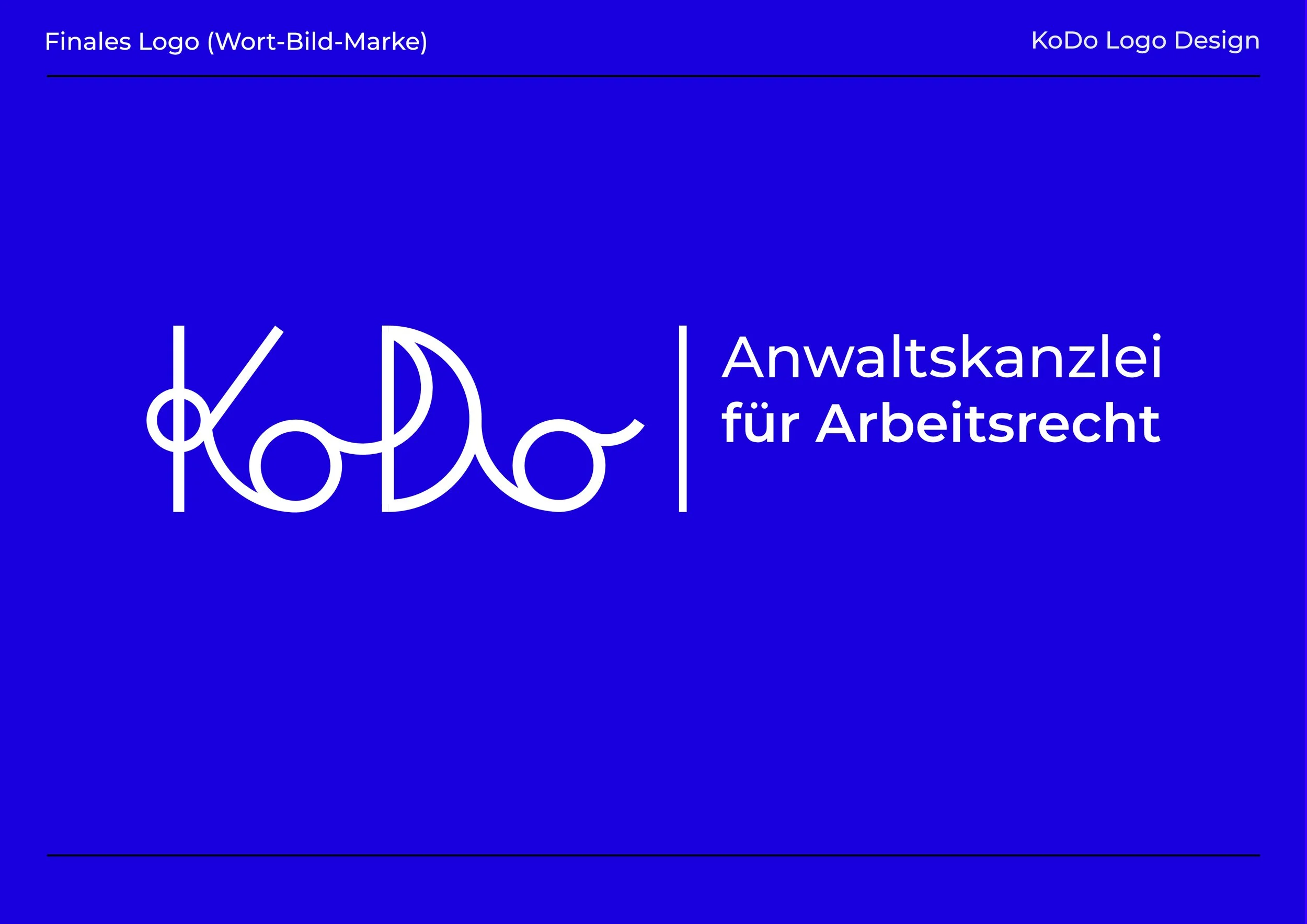 Die verspielte Linienführung hebt sich bewusst von klassischen Kanzlei-Logos ab, und macht so die Identität von KoDo, welche auf Vielfalt, Zusammenhalt und Innovation beruht, sichtbar.